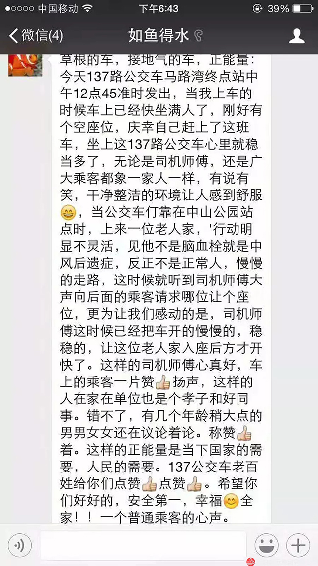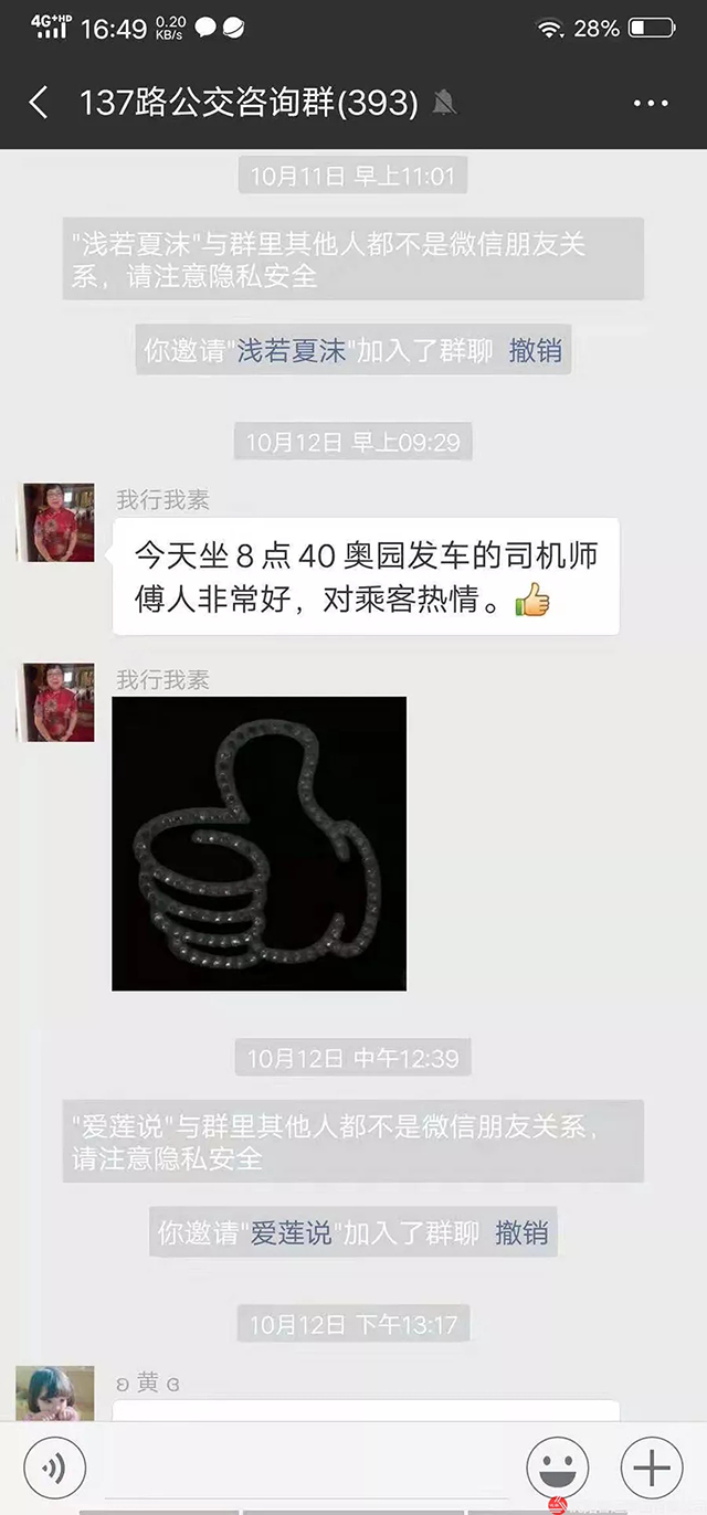 沈蘇公司137路車隊(duì)于2017年年底創(chuàng)新性的建立了137路車隊(duì)公交咨詢?nèi)?,起初咨詢?nèi)褐挥卸怀丝停齻€(gè)月后,137路車隊(duì)咨詢?nèi)阂呀?jīng)達(dá)到了350人左右。咨詢?nèi)旱慕?,方便了乘客與車隊(duì)之間的溝通,車隔時(shí)間的變化車隊(duì)會(huì)在咨詢?nèi)褐械谝粫r(shí)間發(fā)出通知,使乘客出行更加便捷與高效。