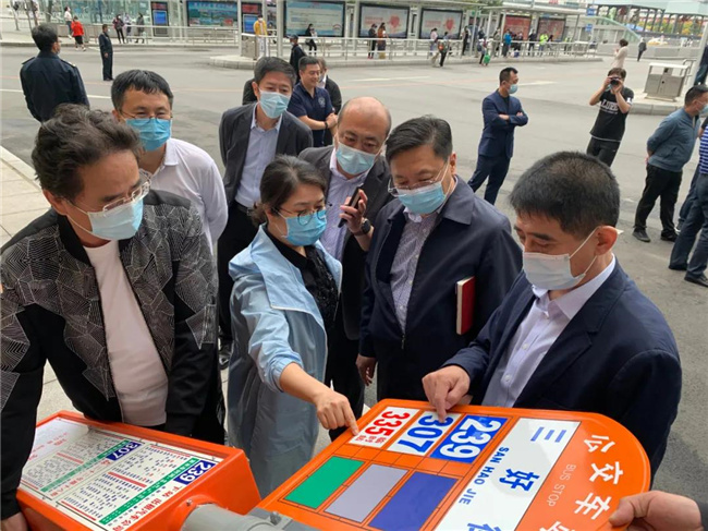 國(guó)慶節(jié)前夕,市交通運(yùn)輸局公交處處長(zhǎng)高永宏、辦公室主任王笑春、執(zhí)法隊(duì)公交執(zhí)法大隊(duì)大隊(duì)長(zhǎng)田豐柱、出租汽車(chē)執(zhí)法協(xié)調(diào)處處長(zhǎng)王軍等一行來(lái)到沈陽(yáng)客運(yùn)集團(tuán)北站公交樞紐站,檢查公交樞紐站的安全生產(chǎn)、疫情防控及國(guó)慶節(jié)期間公交運(yùn)營(yíng)保障情況。