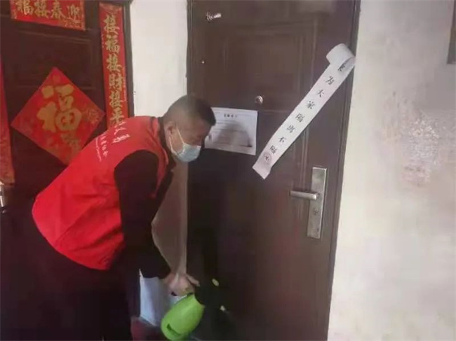 212路黨支部組織黨員志愿者不懼風險,到社區(qū)為居民樓進行防疫消殺。