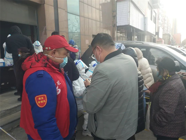 防控疫情哪里需要黨員干部,黨員干部就戰(zhàn)斗在哪里。核酸檢測是防控疫情的必要手段。3月21日早上,通利公司黨委書記、經(jīng)理黃丹準備到單位上班,到小區(qū)門口發(fā)現(xiàn),小區(qū)被封了,一打聽得知,小區(qū)半夜3點被管控封閉。得知當天小區(qū)做全員核酸,便通過微信向社區(qū)請戰(zhàn),對方負責同志告訴他非常需要志愿者,但得先做雙彩后再決定是否用。在等待期間,黃丹聯(lián)系了同小區(qū)的集團同事:黃河公司的干部陳浩,以及陳浩愛人,集團機關(guān)的張彤馨。張彤馨聽說后高興得跳了起來,立馬準備上“戰(zhàn)場”。