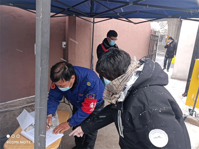 公司院內(nèi)有4家經(jīng)營單位,每天有200余輛同行單位的加氣人員需進出公司院內(nèi)進行加氣,為保證防控安全到位,公司及時排兵布陣,在20名機關(guān)干部被居家隔離的情況下,克服困難,成立機關(guān)志愿者防疫隊,公司領(lǐng)導(dǎo)黨員干部帶頭值崗,登記地點從辦公樓入口前移至公司場院入口,為進入場區(qū)人員登記、測溫、車輛消殺。寒風陣陣,志愿者們的身影一直在公司場區(qū)門口堅守著。