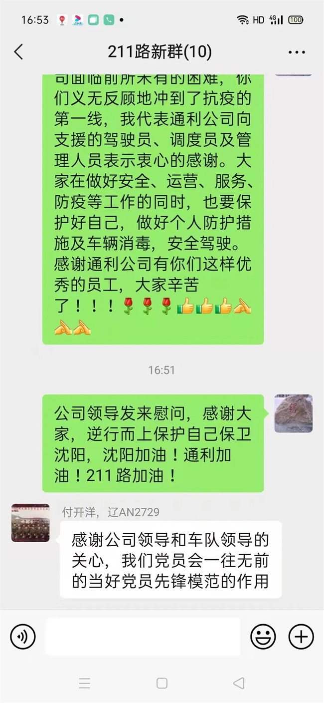 面對駕駛員的辛苦付出,公司通過微信群,向支援的駕駛員表達了公司的關(guān)心與慰問。大家說,看到公司的問候和關(guān)心,心里特別溫暖。駕駛員付開洋說:“感謝公司的關(guān)心,一定會一往無前發(fā)揮黨員先鋒模范作用?!?/p>