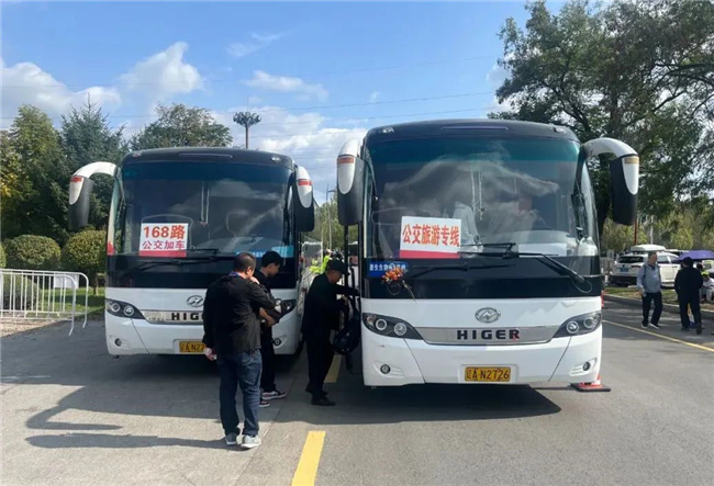華龍公司開(kāi)通公交旅游專線(沈陽(yáng)北站至棋盤山景區(qū))和“沈水之陽(yáng) 我心向往”秋韻情意濃“十一”旅游免費(fèi)直通車線路(沈陽(yáng)市府廣場(chǎng)至祝家小鎮(zhèn)),為游客提供安全、舒適、便捷的乘車體驗(yàn)。