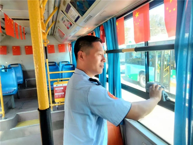 沈蘇、鑫暢公司所屬車隊(duì)精心打造“歡度國(guó)慶”主題車廂,在公交車廂內(nèi)掛滿了五星紅旗和紅色貼紙,讓乘客一踏入車廂便感受到濃厚、喜慶的節(jié)日氛圍。