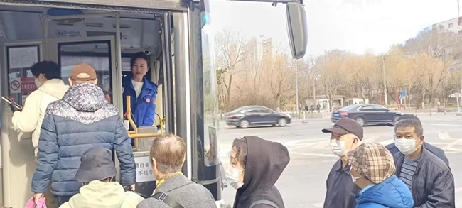 清明前夕,387路客量有所增加,金芳主動(dòng)擔(dān)任起乘務(wù)員的職責(zé),不斷提醒乘客小心慢上,扶好站穩(wěn)。在她耐心的疏導(dǎo)下,乘客們沒有出現(xiàn)浮躁焦慮、一擁而上的混亂場(chǎng)面,而是自覺排起了長(zhǎng)長(zhǎng)的隊(duì)伍,安全有序登上了這趟387路公交車。