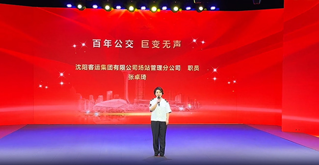 6月26日,主題演講決賽在沈陽廣播電視臺演播廳舉辦。張卓琦以“百年公交 巨變無聲”為主題,通過講述自己的乘車經(jīng)歷和參觀感悟,動情地描繪了沈陽公交百年來的發(fā)展變化和公交人默默奉獻辛勤付出的奮斗歷程,并榮獲二等獎。她的演講既有真摯的情感流露,又有激昂的言辭,深深打動了在場的每一位聽眾,展現(xiàn)了新時代公交人的風(fēng)采。