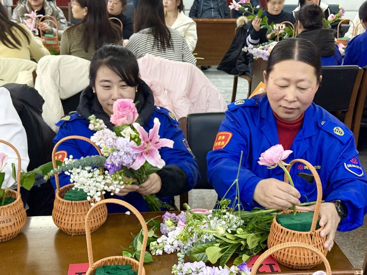 隨后,活動(dòng)進(jìn)入了令人期待的花藝創(chuàng)作環(huán)節(jié)。集團(tuán)工會特別邀請了專業(yè)花藝講師進(jìn)行現(xiàn)場教學(xué)。伴隨著輕柔的音樂,女職工們充分發(fā)揮想象力和創(chuàng)造力,她們或凝神構(gòu)思,或精心修剪,或熱烈討論。玫瑰的嬌艷、康乃馨的溫馨、洋桔梗的雅致……原本普通的花枝在她們的巧手修剪與創(chuàng)意組合下,變成了一籃籃錯(cuò)落有致、生機(jī)盎然的藝術(shù)品。每一件作品都蘊(yùn)含著對美的理解和對生活的熱愛,現(xiàn)場花香與笑聲交織,氣氛溫馨而熱烈。