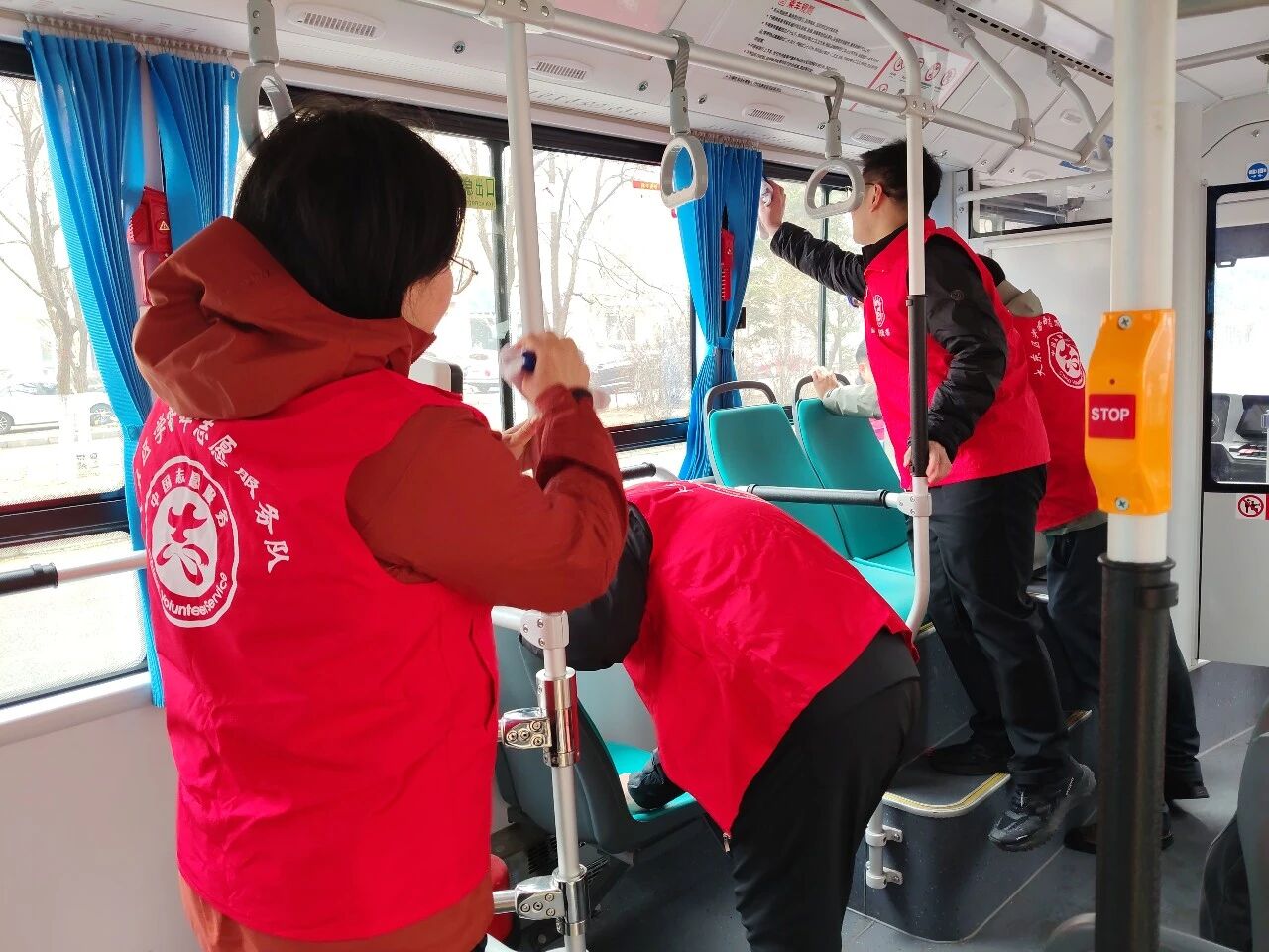 隨后,志愿者們又來到公交場(chǎng)站,對(duì)229路、253路公交車輛展開清潔。大家手持清潔工具,分工擦拭車身、清掃車廂、整理座椅扶手,不放過任何一個(gè)角落。經(jīng)過共同努力,一輛輛公交車窗明幾凈,為市民提供了整潔、舒適的乘車環(huán)境。