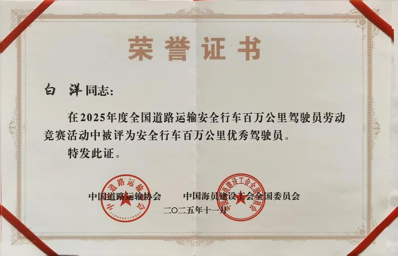 會上,沈陽客運集團(tuán)黃河公司青城山路車隊190路三星級駕駛員白洋同志獲得的榮譽表彰成為全場矚目的亮點——在2025年度全國道路運輸安全行車百萬公里駕駛員勞動競賽活動中,白洋獲評“安全行車百萬公里優(yōu)秀駕駛員”,交通運輸部科學(xué)研究院首席研究員、學(xué)術(shù)委員會常務(wù)副主任李忠奎親自為他頒發(fā)獲獎證書。這份殊榮在遼寧省僅有兩人獲得,為沈陽客運集團(tuán)贏得了榮光。