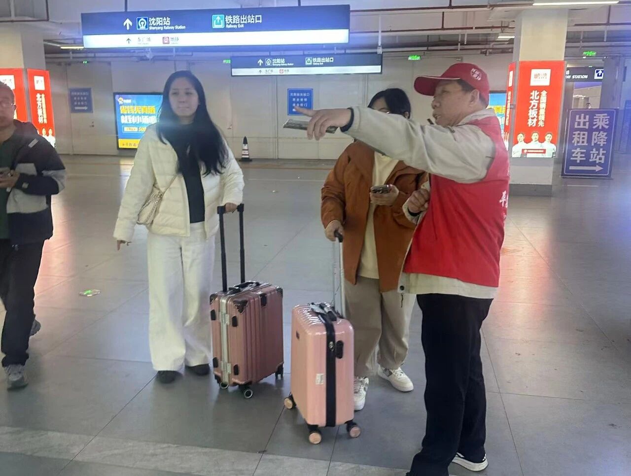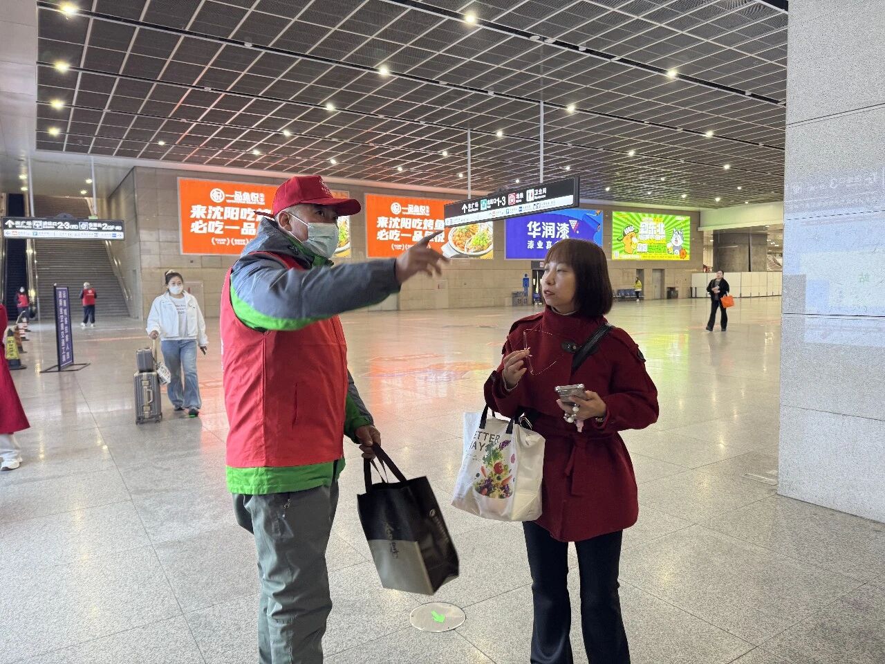 一位從外地回沈陽的王女士感慨:“剛出站有點(diǎn)懵,志愿者不僅告訴我怎么坐車,還提醒我注意臺(tái)階,幫我查了目的地附近的餐館。沈陽的第一印象,就是暖?!?/p>